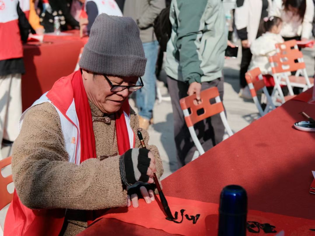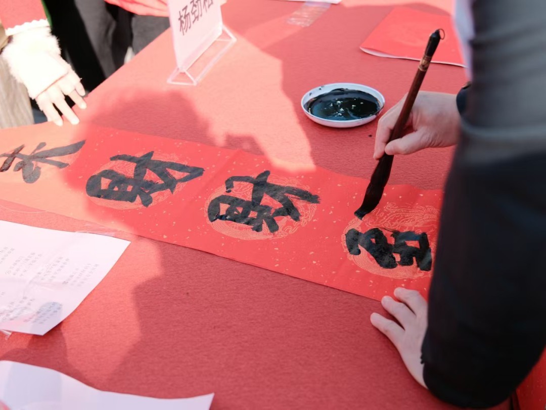 活动现场,墨香四溢,热闹非凡。10位国家级、省级书法家齐聚一堂,他们铺开大红宣纸,饱蘸浓墨,笔锋游走间,一副副寓意吉祥的春联跃然纸上。有的老师笔力苍劲,写下的“盛世新春临吉宅,祥光瑞气满华堂”,字体雄浑大气,引得周围群众阵阵赞叹;有的老师则以细腻的笔触,书写出灵动秀美的春联,每一个字都仿佛蕴含着新春的祝福。