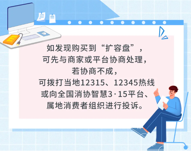 知名品牌通常更加注重产品的质量和售后服务,建议消费者优先选择知名品牌,并通过正规渠道,如官方网站、电商平台自营店、官方旗舰店等进行购买,能够有效降低买到“扩容盘”的风险。在购买后,消费者可以使用第三方检测工具对移动硬盘进行实际容量测试。如发现购买到“扩容盘”,可先与商家或平台协商处理,若协商不成,可拨打当地12315、12345热线或向全国消协智慧3·15平台、属地消费者组织进行投诉。
