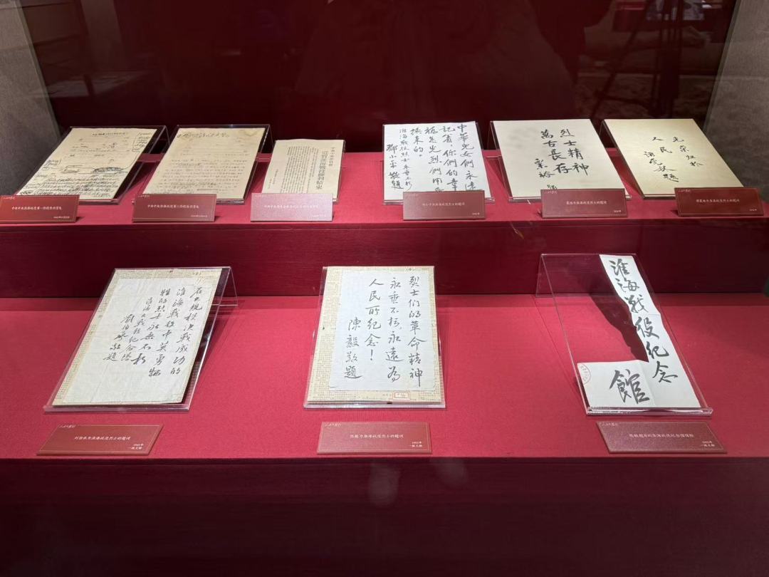 值得一提的是,此次展览以“精品文物”为主要亮点,汇聚一百四十余件淮海战役相关文物。淮海战役烈士纪念塔管理中心党组书记、主任贾萍介绍,其中包括时任中原野战军第4纵队司令员陈赓用过的褥子套、刘伯承1965年为淮海战役烈士的题词、陈毅1965年为淮海战役烈士的题词以及他当年题写的淮海战役纪念馆馆标等四件一级文物、五件二级文物和九件三级文物。这些文物展品虽静默无声却力顶千钧,它们或铭记历史,见证党带领下取得伟大胜利的辉煌成就;或沁染热血,彰显革命先辈无畏斗争勇夺胜利的革命精神;或饱含深情,展现支前人民群众“要人有人,要物有物”“部队打到哪里,就支援到哪里”的崇高觉悟。