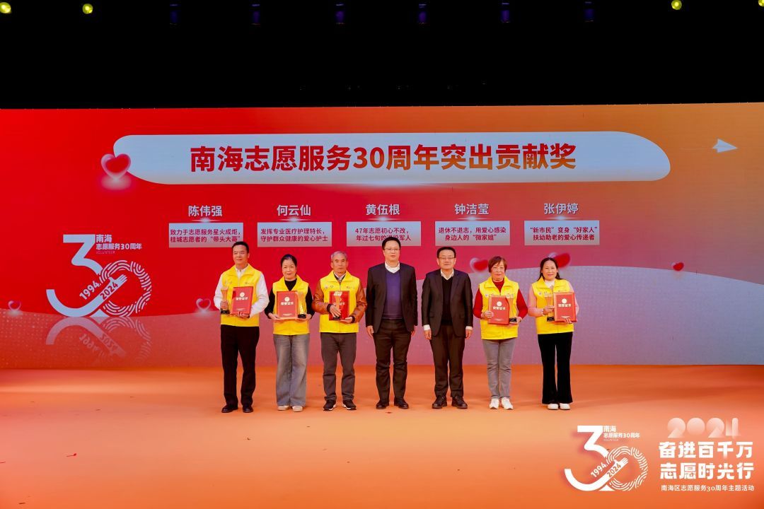此外,活动还特别设置了“30周年突出贡献奖”颁奖环节,以表彰那些长期以来为南海志愿服务事业做出突出贡献的个人。他们的事迹激励着每一位在场的志愿者,也激励着更多的人加入到志愿服务的行列中来。