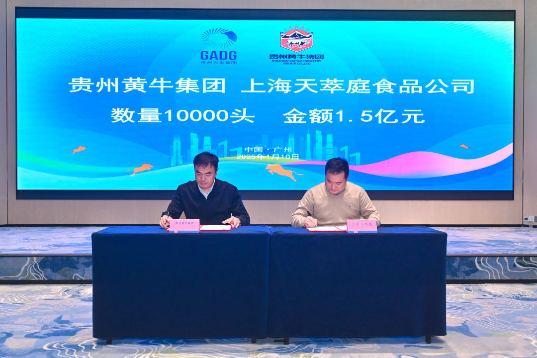 答谢会拉开了贵州黄牛集团2025年深耕市场的序幕。会上,贵州黄牛集团分别与上海天萃庭食品公司、厦门驰得宝公司、浙江靖润公司、上海锦江国际公司、广州潮发公司、广州丰营公司签订合作协议。签约牛只数量达3.8万头,涉及签约金额共计5.7亿元,项目签约标志着贵州黄牛集团的2025年市场开拓打响了“第一枪”,实现了新年“开门红”。