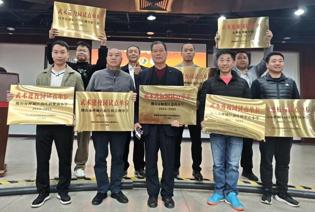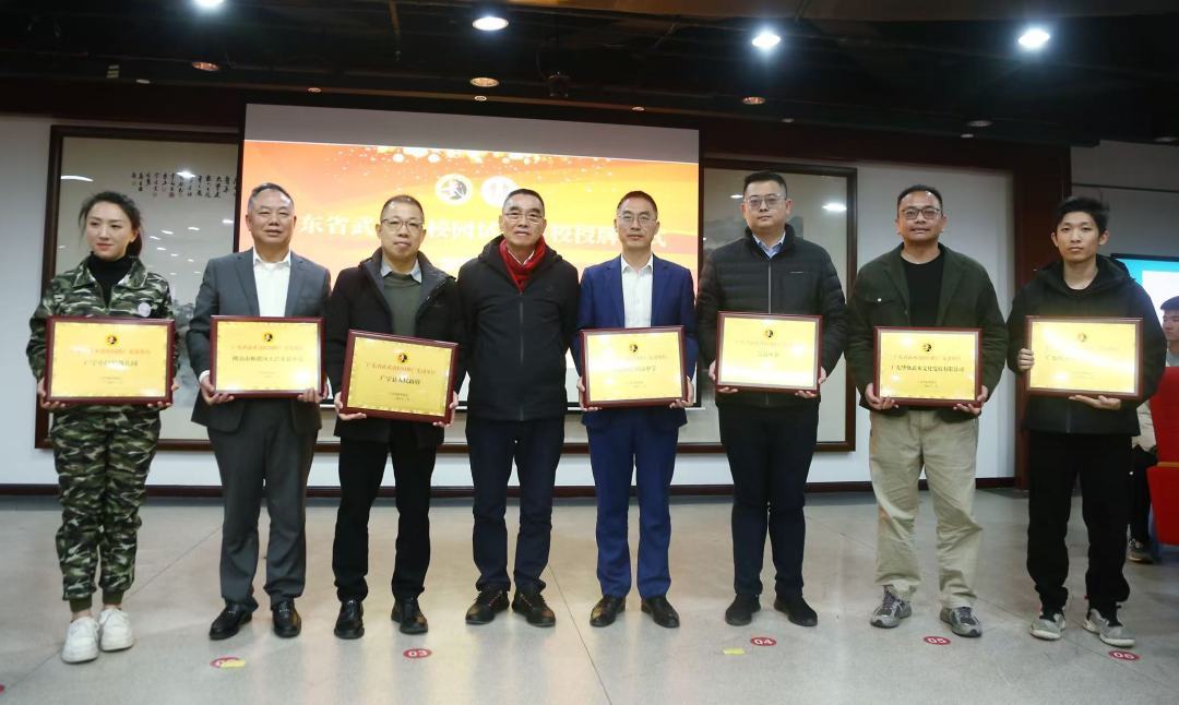 1月10日,由广东省武术协会、广东学生体育艺术联合会共同主办的广东省武术进校园试点学校授牌仪式在广州举行。来自全省各地市教育局和文广旅体局代表、武术进校园推广先进单位和个人及武术进校园试点学校代表齐聚一堂,为武术进校园工作建言献策,分享武术进校园取得累累硕果的喜悦。