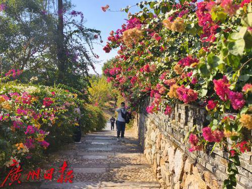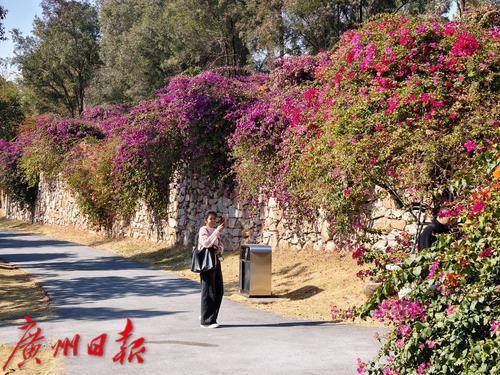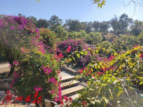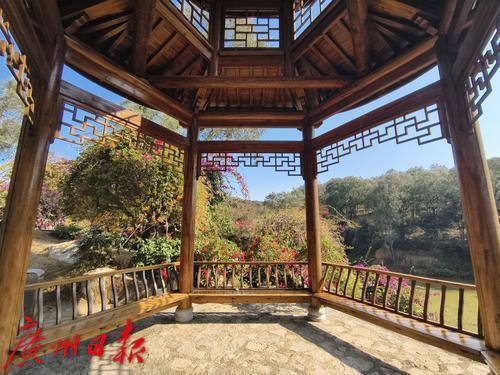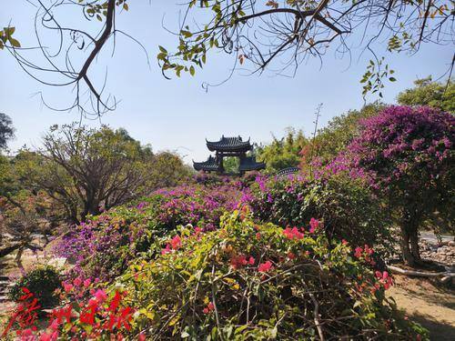 霓裳园的设计融合了岭南传统园林元素与现代花卉展示,园内建筑古典雅致,亭台楼阁错落有致,移步换景,每一处景观都饱含岭南风韵。园内种植了多种三角梅,色彩斑斓,从柔和的粉色到鲜艳的红色,每一朵花都在阳光下展现出动人的姿态,为游客提供了一个亲近自然、认识植物多样性的好去处。