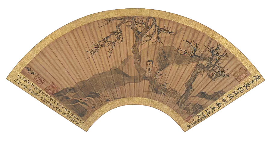 Gentleman sitting by the creek, leaning on a tree, folding fan mounted as album leaf, by Tang Yin, will be among the exhibits demonstrating Chinese fan art at Shanghai Museum on People's Square from October. [Photo provided to China Daily]