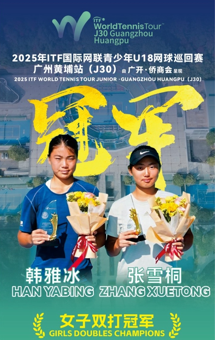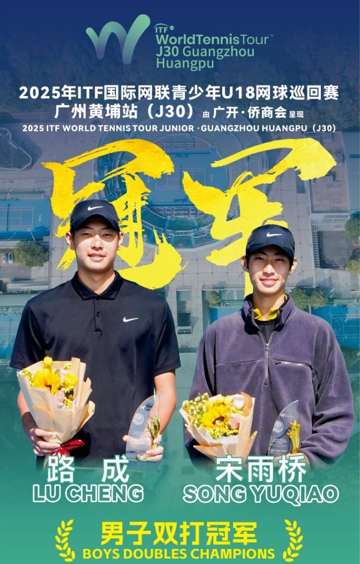 1月12日,2025年ITF国际网联青少年U18网球巡回赛广州黄埔站(J30)落下帷幕,在两场单打决赛的压轴大战中,周鑫、张思嘉皆以2比0获胜,分获男、女单打冠军。路成/宋雨桥获得男双冠军,女双冠军则被韩雅冰/张雪桐收入囊中。