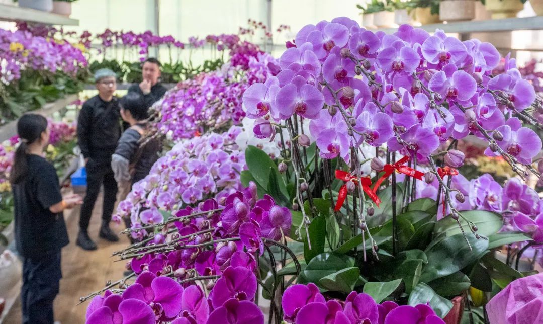 现场,蝴蝶兰档主莫小姐告诉小荔,今年,蝴蝶兰多了几款新品种,其中,被大家称作“红牛”的大热新品,当前已经预订一空,店内也无多余的备货。“除了‘红牛’,店内另一款新品‘米奇头’蝴蝶兰也备受年轻群体欢迎,不仅花型好看,颜色也更符合年轻人的喜好。”莫小姐介绍道。至于2024年新春期间“大热”的马卡龙色蝴蝶兰以及“龙兰”,莫小姐表示,今年两款蝴蝶兰仍受市民欢迎。蝴蝶兰的价格方面,莫小姐表示,目前,自己店内蝴蝶兰跟平日比起来价格浮动并不大。小支单株蝴蝶兰根据花苞数量和款式不同,价格在10~23元间,中株则在28~35元间,部分新品种价格则在35元以上。