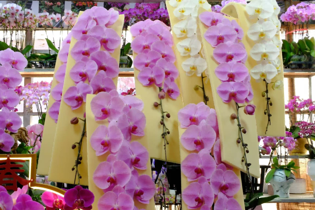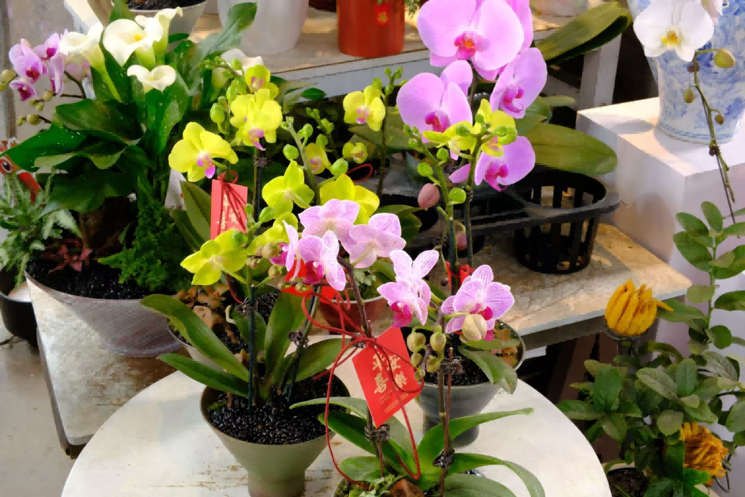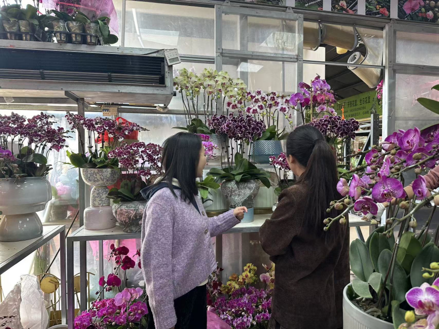 此外,另一位蝴蝶兰档主林先生则表示,去年备受欢迎的“杭州美人”蝴蝶兰由于产量增加,今年价格有所下降,而“龙兰”“马卡龙”等其他价格则区别不大。“店内今年也上新了‘蕾丝边’蝴蝶兰和‘米奇头’蝴蝶兰,不少年轻人爱买。但对于中老年客群,传统配色还是更受欢迎。”林先生说道。