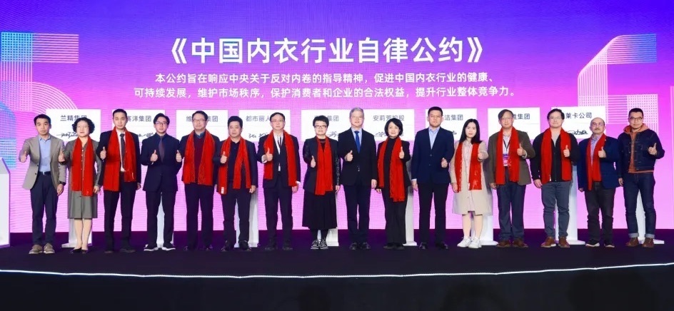大会发布了《中国内衣行业自律公约》。都市丽人集团、爱慕集团、汇洁集团、安莉芳控股、维珍妮集团、新永胜集团、莱卡公司、兰精集团、赛洋集团行业头部企业代表上台共同签署,以此加强行业自律,鼓励行业创新,促进中国内衣行业的健康、可持续发展,维护市场秩序,保护消费者和企业的合法权益,提升行业整体竞争力。