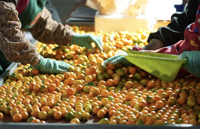 工人们在认真分拣脆蜜金桔
