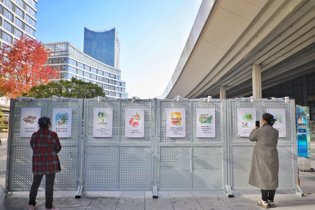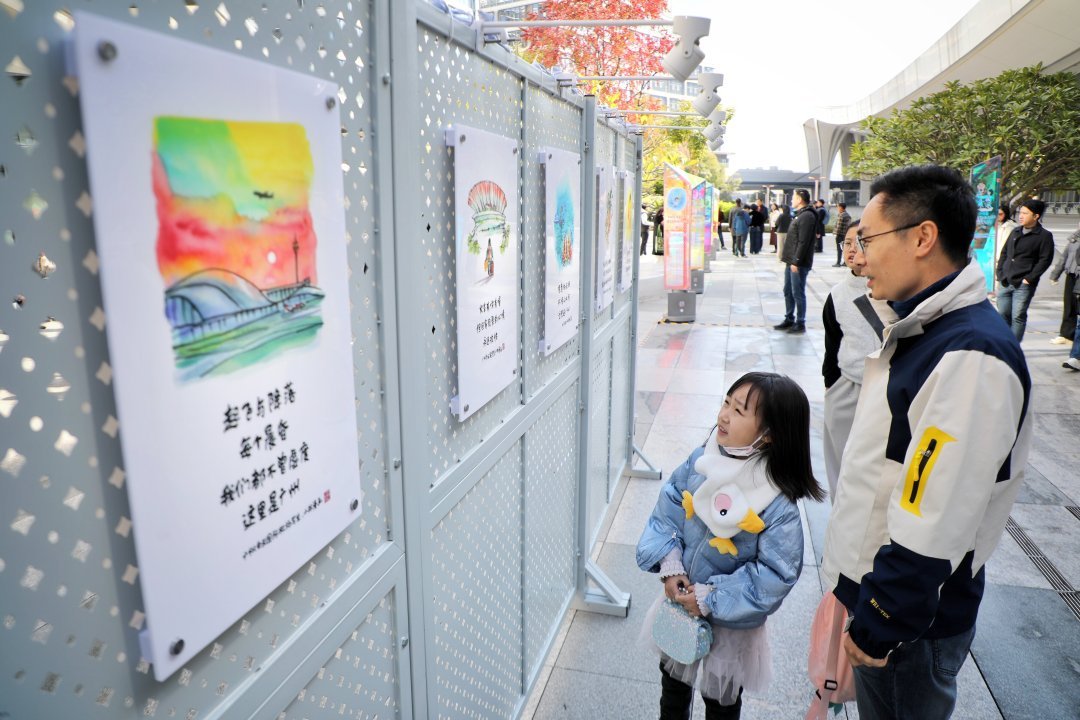 在小林的画笔下,一座座白云地标、一处处历史印记、一道道白云美食,变得触手可及又亲切可爱。专门来观展的市民廖晓娟说:“我认为描绘广州白云站的作品写得很好,火车有快有慢,回家的心情确实是欢快的,还有广州设计之都、韩国烤肉街等都是我熟悉的地方,以漫画的形式展现我们的日常生活写照和烟火气,文案写得好,画得也好!”