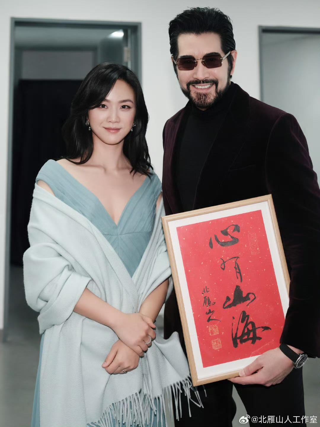 在2024微博之夜中,安排有互送礼物的环节,费翔在这个环节抽中了汤唯的礼物——由她父亲写的墨宝“心有山海”。