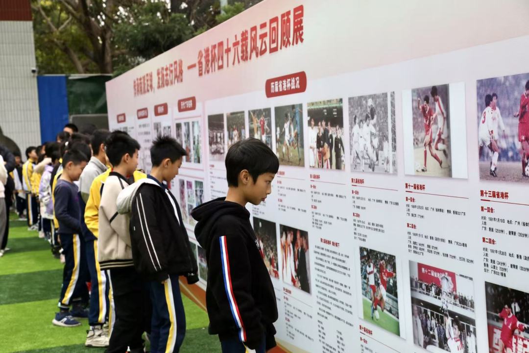 为了全面展示省港杯46年的风云变幻,学校在五人足球场精心准备了一场省港杯的主题展览,历届省港杯的图文展示脉络清晰。参加足球文化节的全校师生从这个展览真正认识到省港杯全历史过程,嘉宾们则从中抚今追昔,感怀无限。