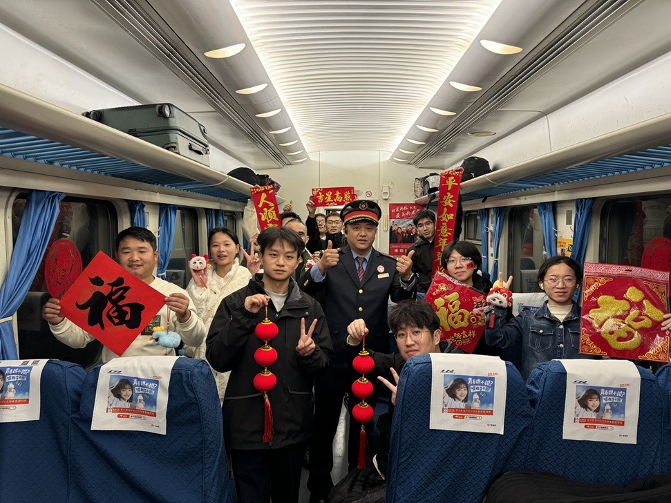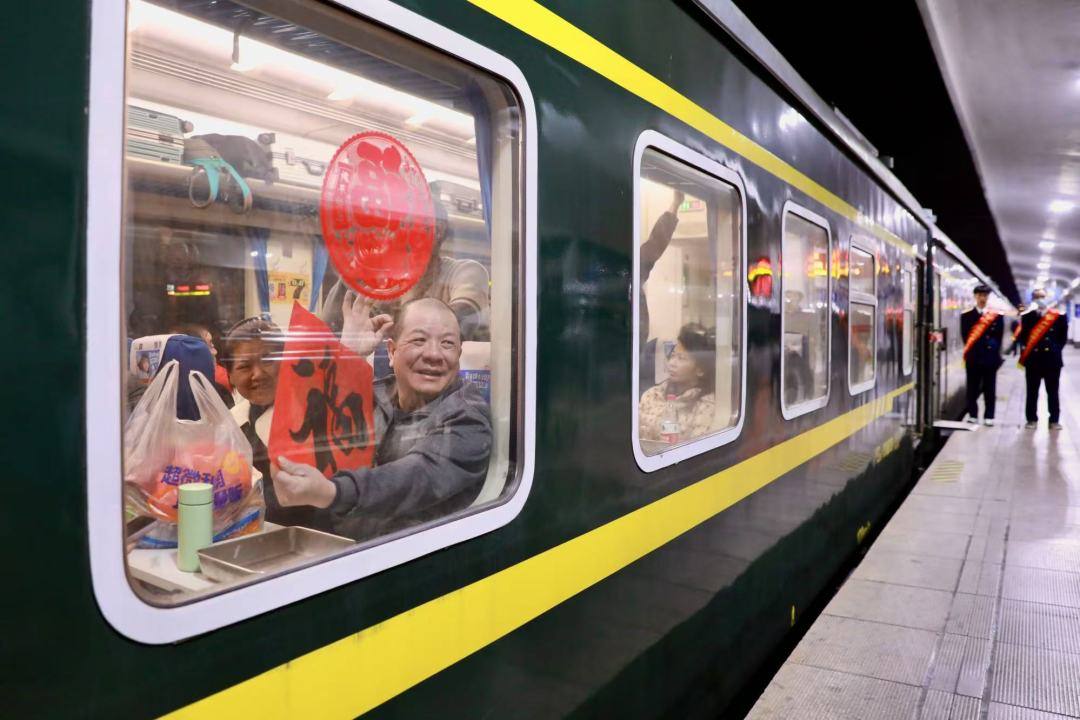 “我们为旅客准备了春联、福字等伴手礼,送给老乡带回家,特别有意义。”列车长张明伟介绍,列车工作人员用窗花、福字对车厢进行了精心装扮,车厢里洋溢着浓浓的喜庆氛围。