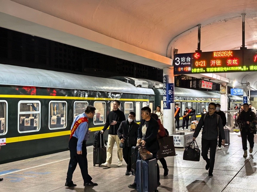 1月14日0时21分,由广铁集团广州客运段和广州电务段联合担任值乘的K6526次列车,载着归乡的旅客驶离广州站站台,将在10时38分抵达湖南娄底站,这是粤港澳大湾区今年春运开行的首趟共青团号列车。