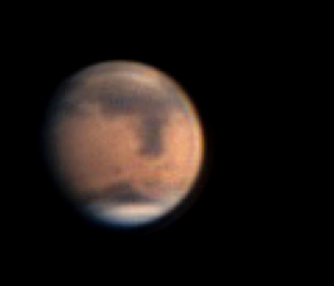 天文爱好者告诉记者,近日,火星子双子座由东向西逆行,视直径14.5角秒,视亮度为负1.4星等,其亮度与夜空最明亮的恒星——大犬座天狼星相仿。通过望远镜观察火星,有机会看到火星南极或北极的白色极冠。