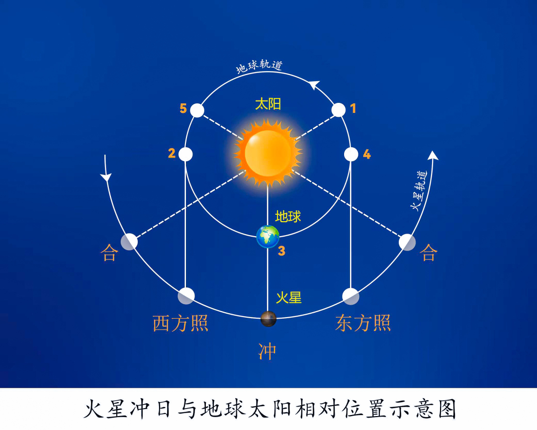 火星冲日,平均779天发生一次。上一次出现在2022年12月8日,下一次将发生在2027年2月19日。