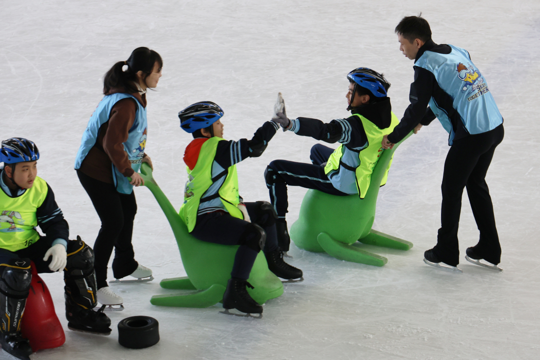 在一次次的尝试中,孩子们真切地体验到了滑冰带来的快乐与成就感。