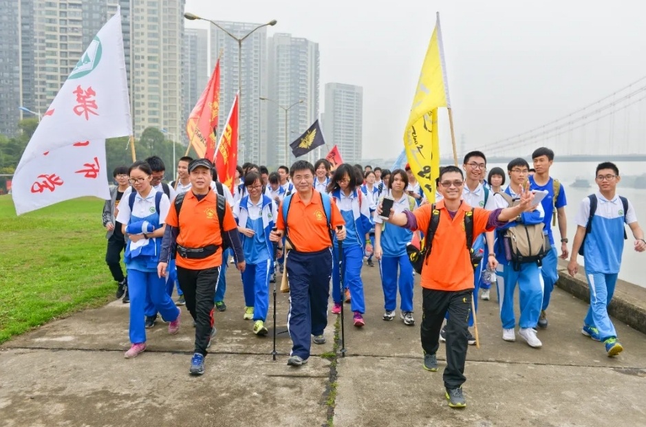 40公里徒步活动时,谭根林与学生合影