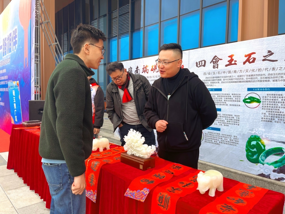 在广贺高速四会服务区,“砚玉四会”点评打卡和端砚展示推广活动格外引人入胜,玉石和端砚爱好者们在这里交流切磋,围观旅客直呼“涨知识”。