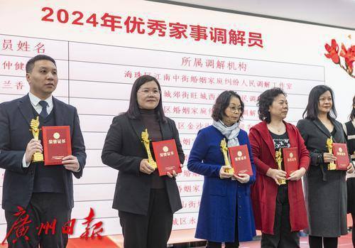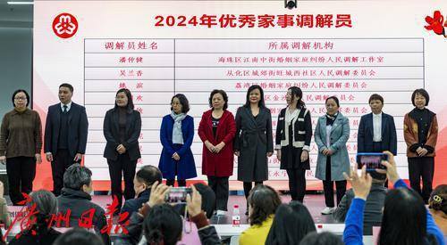 1月14日下午,广州市妇联和广州市司法局在市儿童活动中心联合开展广州市婚姻家庭纠纷调解故事分享会暨调解专家交流活动。活动现场正式发布了《广州市婚姻家庭纠纷调解服务指南》,并为广州市家庭纠纷人民调解委员会首批受聘调解员及专家顾问颁发聘书。