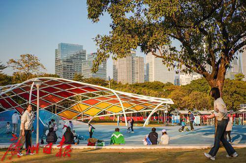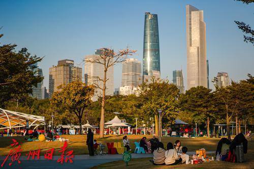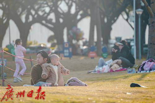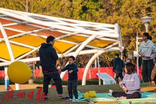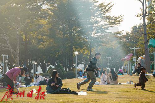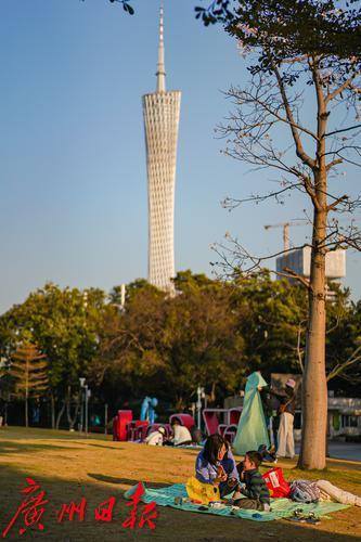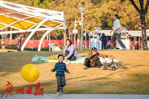广州近期天气是舒适暖和的晴冬。在二沙岛的体育公园,冬日的阳光轻柔地洒落,草坪上,不少市民铺开野餐垫坐下、躺下,尽情地与阳光接触。一旁的运动器材区、儿童玩乐区同样热闹非凡,大人在阳光下锻炼,在冬日里出出汗,孩子们则在一旁嬉笑玩耍,你追我赶,脸上洋溢着幸福的笑容。阳光、草坪、欢声笑语,共同构成了一幅温馨而美好的画面,晴冬的公园里,每个人都在以自己的方式享受着这份温暖与惬意。
