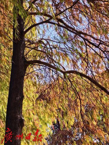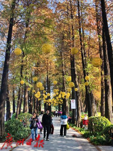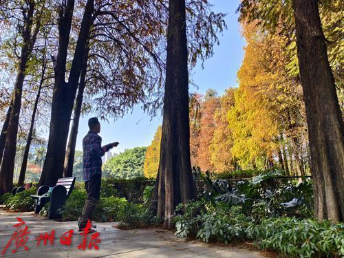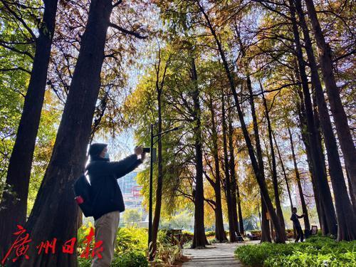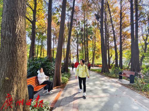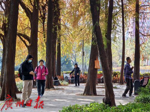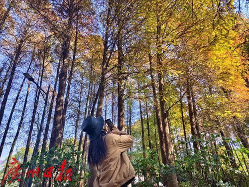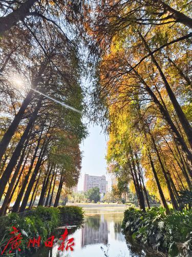 每当冬季来临,在流花湖公园内的落羽杉都会变黄变红,与湖面的碧波相映成趣,为公园增添了一份温暖而宁静的氛围,也成为了广州市冬日旅游的一个亮点。游客可以在公园内漫步,欣赏落羽杉的美丽景色,也可以在里面锻炼身体,呼吸新鲜空气。