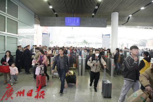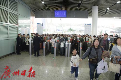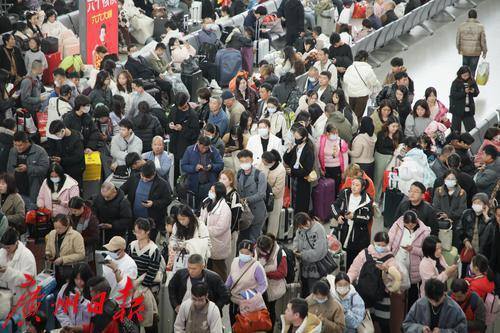 广州南站候车大厅人头涌涌秩序井然。