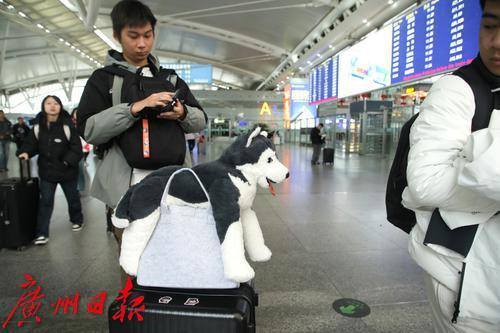 旅客手持福字合影。