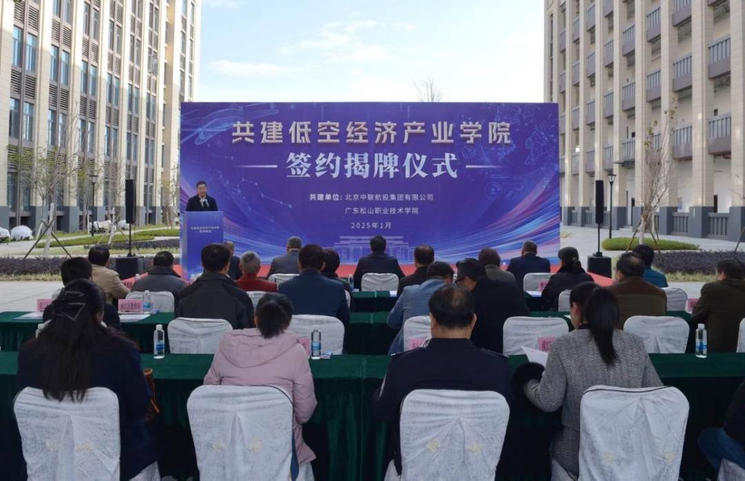1月14日,广东松山职业技术学院与北京中联航投集团有限公司共建低空经济产业学院签约暨揭牌仪式在广东松山职业技术学院莲花校区举行。