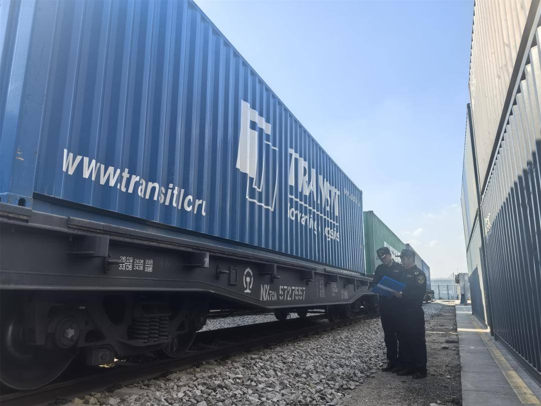 增城海关关员对即将发运的集装箱开展监管。