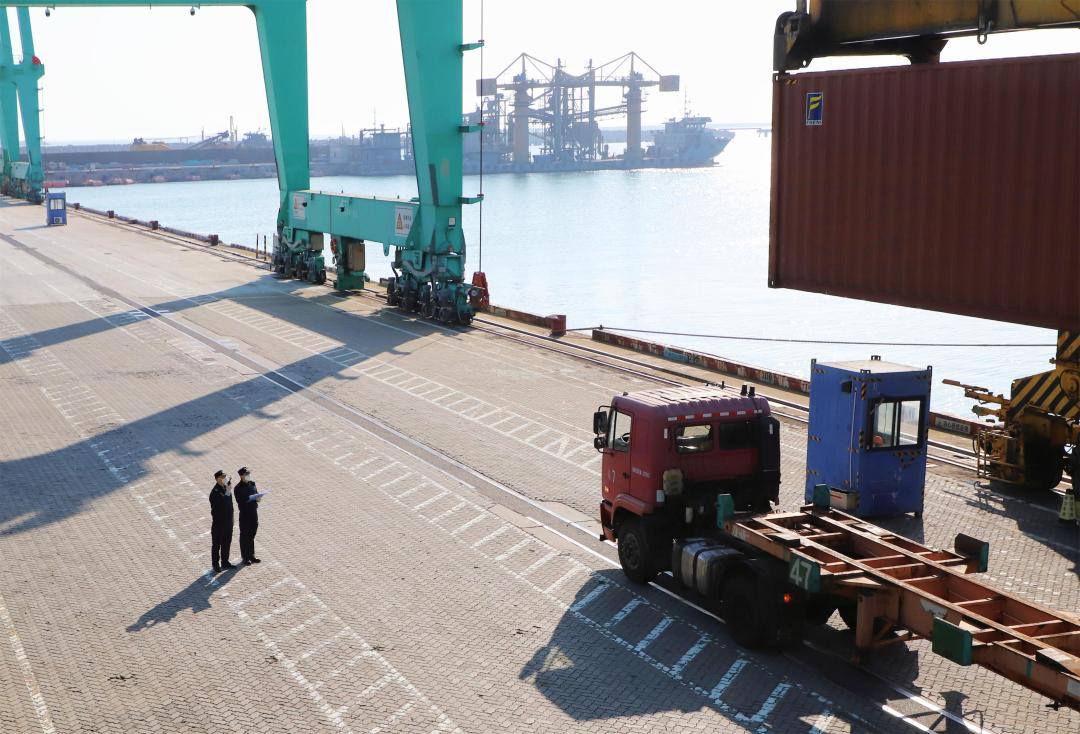 广澳海关关员对抵港货物进行船边监管。