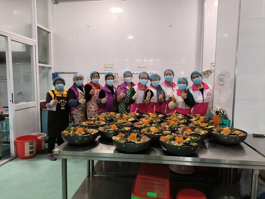 值得关注的是,在团年饭前夕,华口社区养老服务中心的志愿者们在厨房忙前忙后,为“团年饭送福行动”提前进行准备,搓面粉、包福角、打包装等事项有条不紊地进行着,共制作了250多份福角。