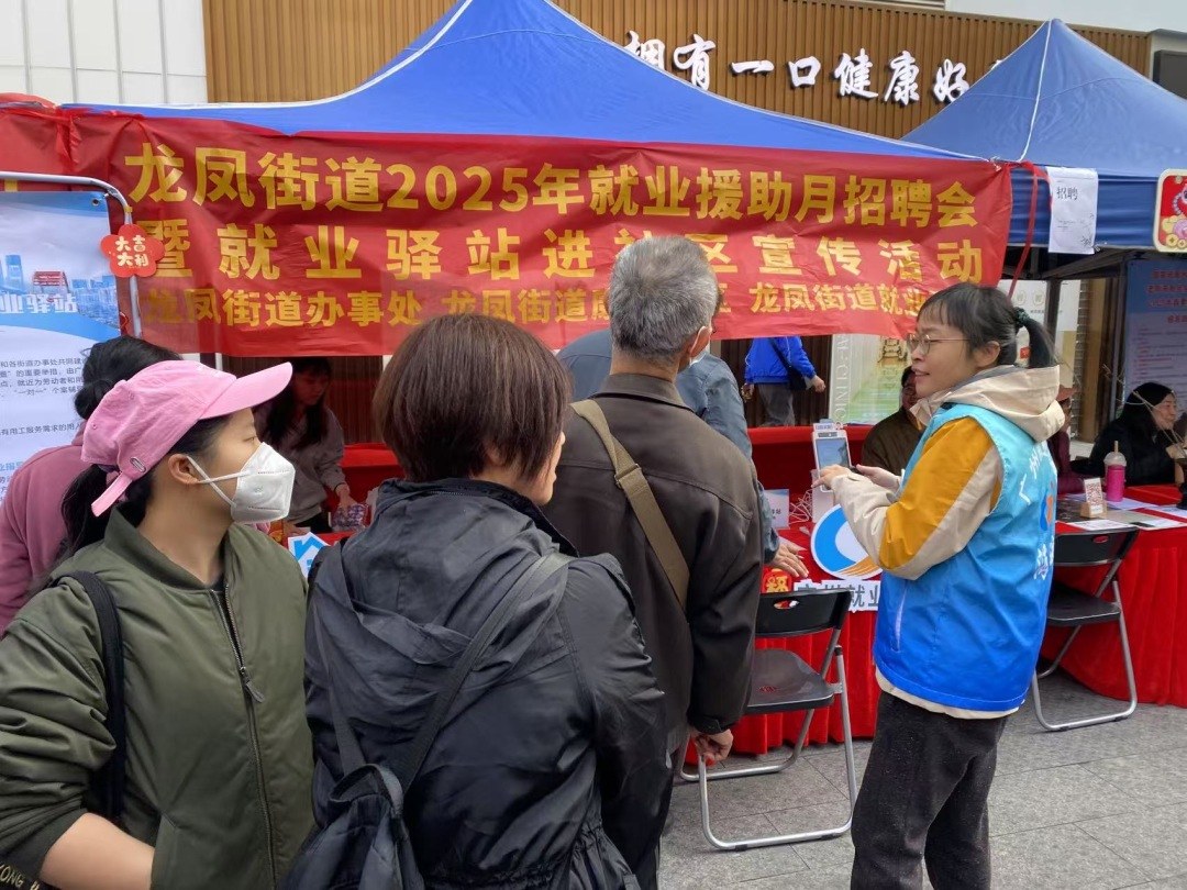 招聘会现场人头攒动,热闹非凡,龙凤街充分发挥地域优势,精心筛选并推送了一系列涵盖多个行业领域的就业岗位,从新兴的科技行业到传统的服务行业,从全职岗位到零工妈妈岗,全方位满足了不同专业背景、技能水平求职者的多元需求。26家大中型企业齐聚现场,纷纷伸出“橄榄枝”,覆盖文化艺术业、商务服务业、食品制造业等多个行业,为广大求职者提供了管理岗、行政办事员、营业员、普工等70余个岗位。其中,专招残疾人企业9家,提供了12个岗位,彰显了社会对特殊群体的关爱与支持。