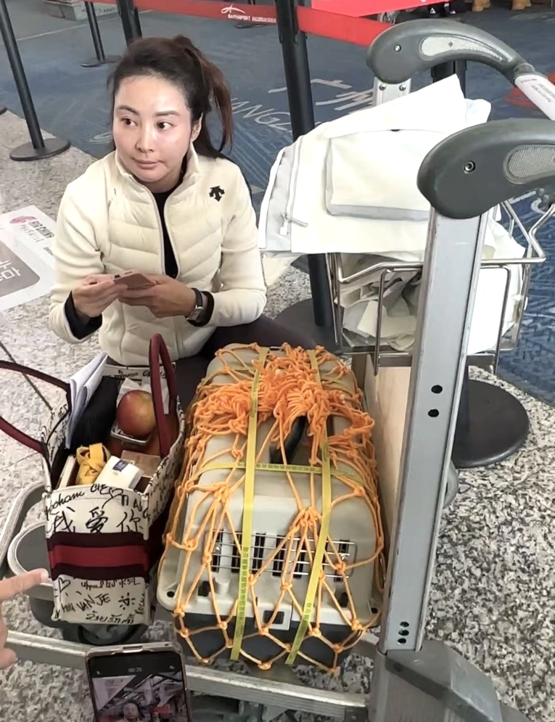 据钱女士介绍,图图已经是第四次坐飞机了,它对宠物航空箱一点也不陌生和害怕了。她笑着说:“早上它自己很熟练钻进箱子里,看起来和我一样归心似箭。”