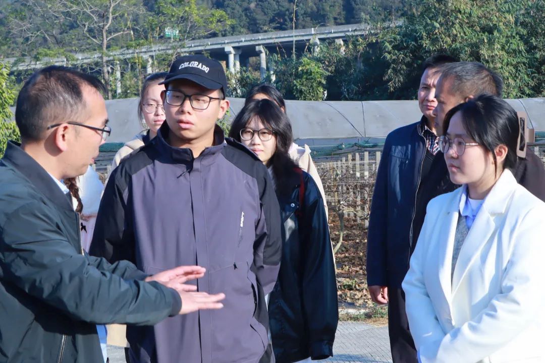 1月13日,在佛山大学数学学院数学系教师党支部书记周青山的带领下,两支实践团队赴簕竹科技小院选址进行实地参观调研。省“双百行动”驻新兴县服务队蒋忠海院长表示,该地计划打造一个集科研、观光、教育于一体的现代农业科技示范平台。