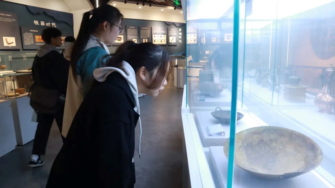 在云浮市欧德罗厨具博物馆,实践团队跟随讲解员的步伐,从旧石器时代的石碗锅具到当代家家户户的不锈钢餐厨具,了解人类社会炊具的演变过程。