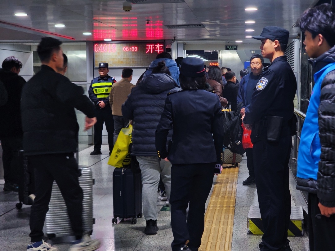 “东站周边人员流动性大。对此,铁路公安多措并举,对影响旅客出行安全的惯性治安问题,坚持露头就打、冒尖就打的高压态势,发现一起、严惩一起,确保旅客出行平安。”钟锋说,广州东站派出所利用站内广播、宣传栏播放和张贴温馨提示,民警则带上小喇叭,向乘车旅客派发宣传手册,开展防盗反诈、铁路安全知识宣传,提高旅客的安全意识和自我防范能力,让大家都能顺利回家过个好年。