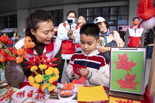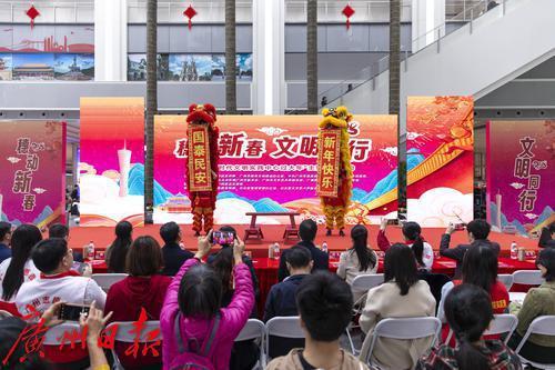 1月15日下午,2025年穗动新春 文明同行——“我在新时代文明实践中心过大年”主题实践活动在充满喜庆气氛的广州白云站圆满举行。现场活动丰富多彩、形式多样,包括文明实践节目展演、书法名家送春联、DIY非遗新春礼物、广府年货品尝、文明新风有礼问答、趣味体育运动……让市民和旅客近距离感受广州新时代文明实践建设成果。