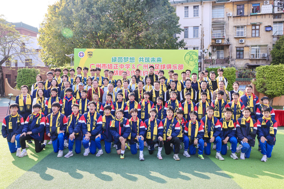 1月16日,“绿茵梦想 共筑未来——广州市培正中学与广州豹战略合作签约仪式在广州市培正中学举行。广东校园足球专家、广州市足协副秘书长李勇,广州市培正中学校领导、足球队教练及学生,广州豹足球俱乐部领导、教练及球员齐聚一堂,共同见证这一具有里程碑意义的时刻。