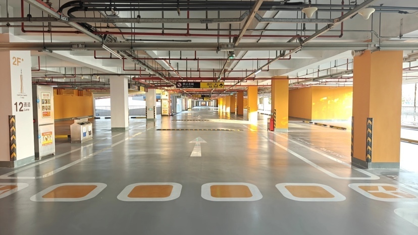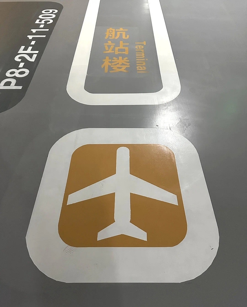 翻新改造后的P8停车场二层西侧,墙面以明亮欢快的橙色为主色调,风格大气简约;地面采用高品质耐磨防滑材料,为旅客提供更优质的停放环境;飞机造型地贴,停车位标线更加清晰可见,有效提升通行效率。此外,该区域设置了网约车上客点、候车休息区、便利店以及春风驿站服务点,候车环境更加舒适、便捷。
