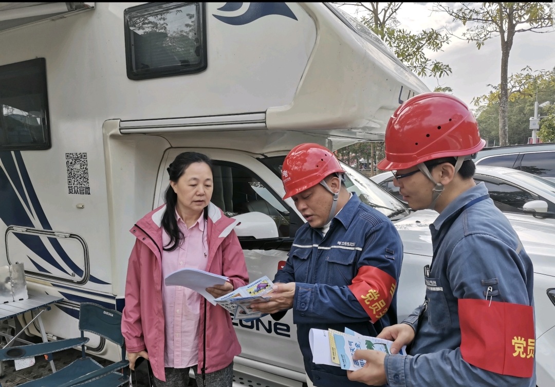 1月15日,雷州局党员突击队到处井村房车营地开展用电安全知识宣传,确保房车旅客们的用电安全、稳定。(陈湛 摄)