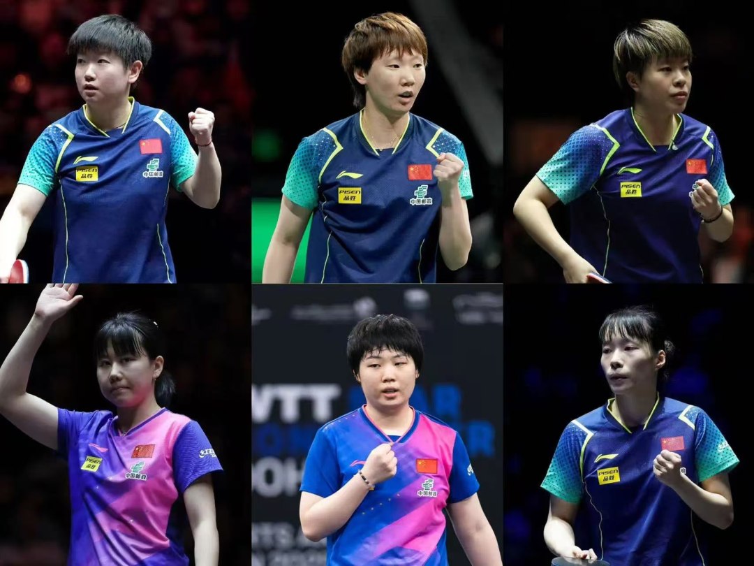 女队:孙颖莎、王曼昱、王艺迪、陈幸同、蒯曼、石洵瑶