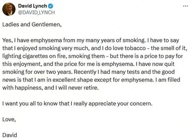 ▌大卫·林奇发文回应患上了肺气肿:我永远不会退休
