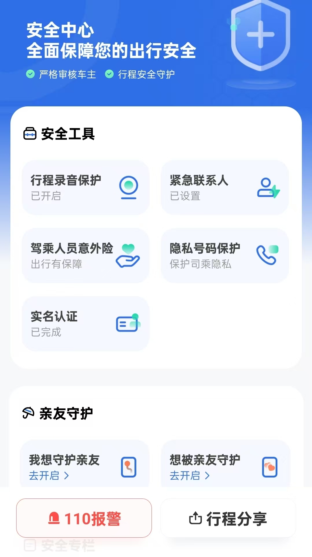 滴滴顺风车倡导大家提升安全出行意识,熟悉了解“小蓝盾”滴滴安全中心内行程分享、紧急联系人、行程录音保护等各项安全功能,一起加强假期出行安全防范。