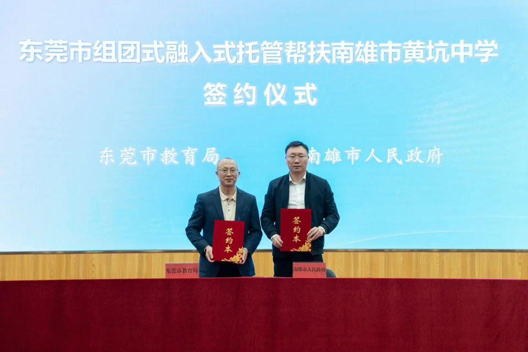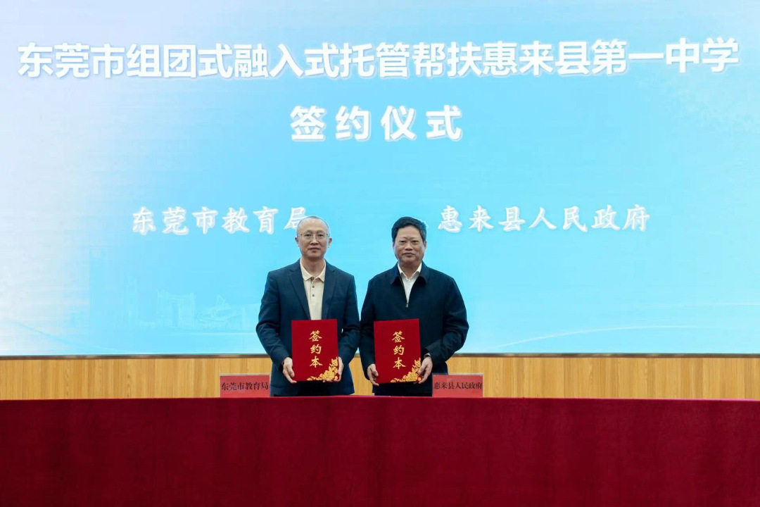 为贯彻落实广东省委、省政府“百千万工程”要求,切实加大对以县城为重要载体的新型城镇化建设首批15个试点县的教育帮扶力度,东莞市组团式融入式托管帮扶惠来县、南雄市普通高中工作筹备已久。在前期双方教育部门和托管帮扶结对学校互访交流并谋划推动、达成共识的基础上,于1月15日在东莞举行签约活动。据悉,东莞将在全市范围内精挑细选一批学校行政和骨干教师,通过三年的托管帮扶,共同谱写携手推动教育高质量发展的新篇章。