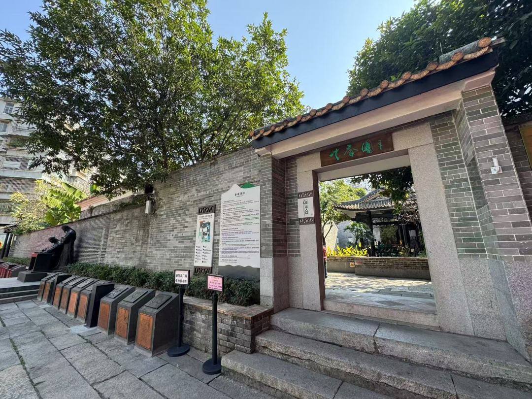 走进海珠区怀德大街,树影斑驳,古色古香,十香园纪念馆大隐于此,坐落在江南大道中怀德大街3号,前临瑶溪,与广州美术学院、岭南美术馆毗邻。