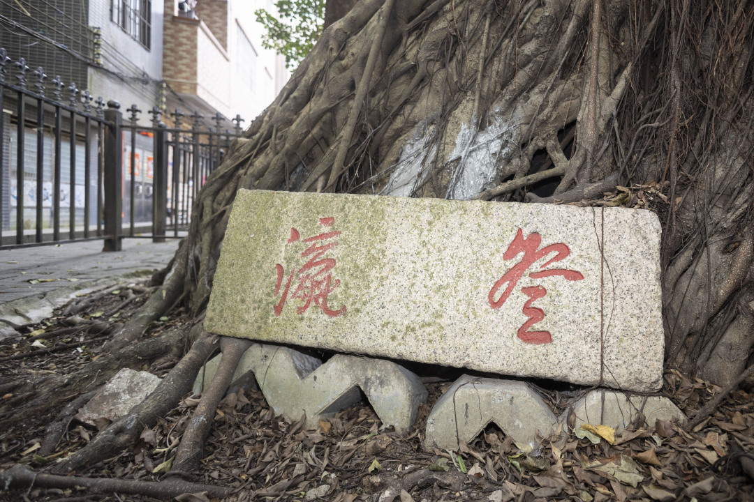 在登瀛古码头旧址上,一块刻着“登瀛”二字的花岗石匾横卧在大榕树下。“登瀛”意为“登陆瀛洲”,“登瀛大街”正是过往连接小洲村登瀛古码头到村内的重要通道,现在则是吸引众多游客前来参观的文化地名标识。