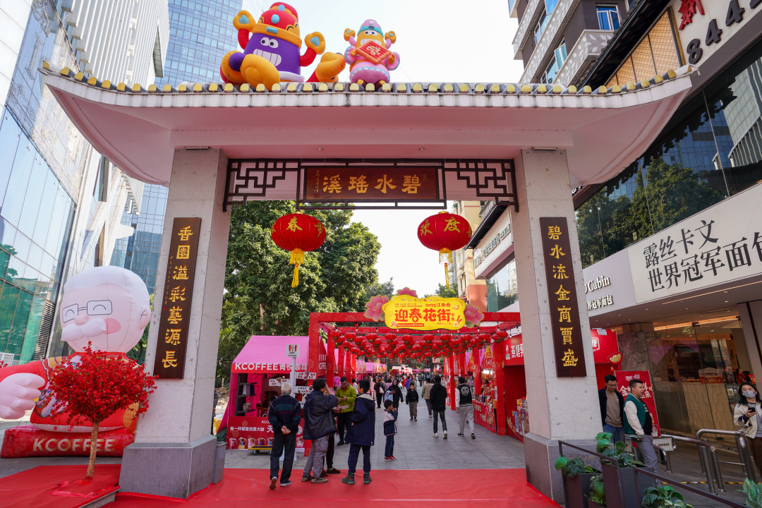 新春味浓,羊城花香。“行花街”是岭南地区春节的重要民俗活动,2025年1月17日傍晚,广州市海珠区瑶溪沿岸被璀璨的灯光点亮,江南西迎春花街市集在此正式开幕。江南西迎春花海全新亮相、商圈IP引来市民游客打卡、花街市集带来岭南年味,为市民群众和广大游客奉献了一场全天候多方位的沉浸式感官盛宴。