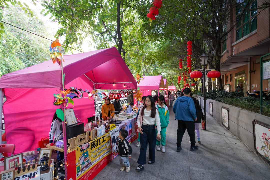 市集还特别设置了新年公益摊位和品牌品宣区,为市民们提供了更多学习和互动的机会,共同营造出一种别样的新春氛围。为了让市民们更好地享受市集乐趣,主办方精心策划了一系列趣味活动。市民们只需到服务台签到领取集章卡,参与游戏互动装置集齐印章后,即可到服务台扫码抽奖获得精美礼品。这一活动不仅增加了市集的趣味性,也激发了市民们的消费热情。