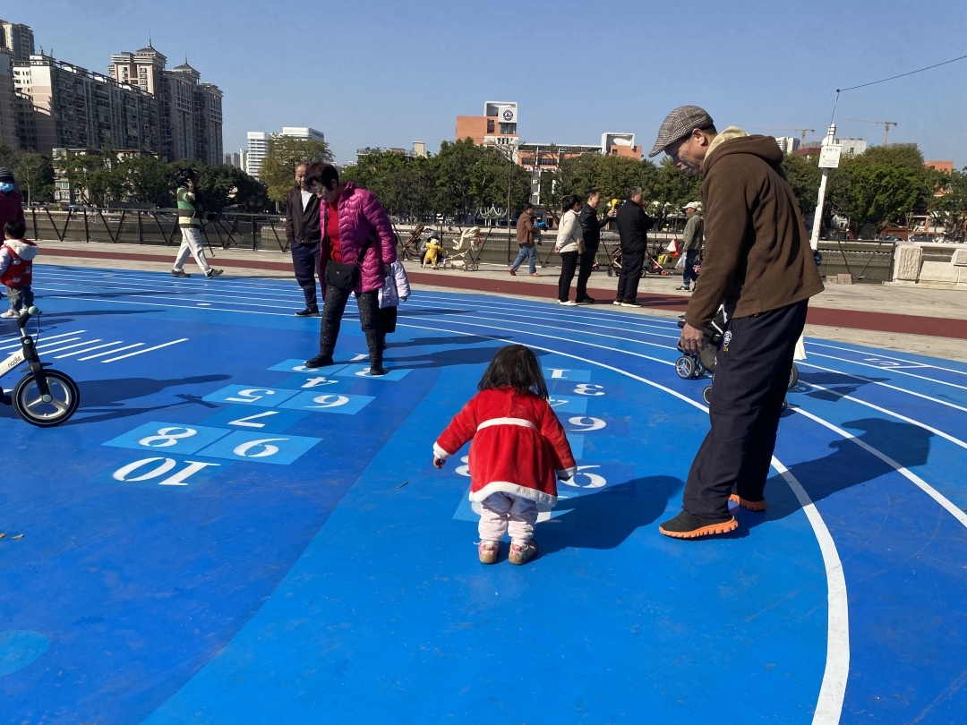 “以前这一带比较杂乱,野草丛生,现在风景好,好多人喜欢来走一下、坐一下,我也不用走五六分钟去青年公园了,楼下就像公园一样,更方便了。”一位刚结束晨练的街坊说。“我是去年底走到这边,发现变了样,第一反应是‘这个地方是我家附近吗?好像出门旅游一样’。”住在附近电业社区的街坊周姨开心地分享,家门口这么靓,令她感觉很幸福,“有这么好的环境,街坊的交流也多了起来,大家一起在江边散个步、唱个歌、跳个舞,心情变得好靓。”